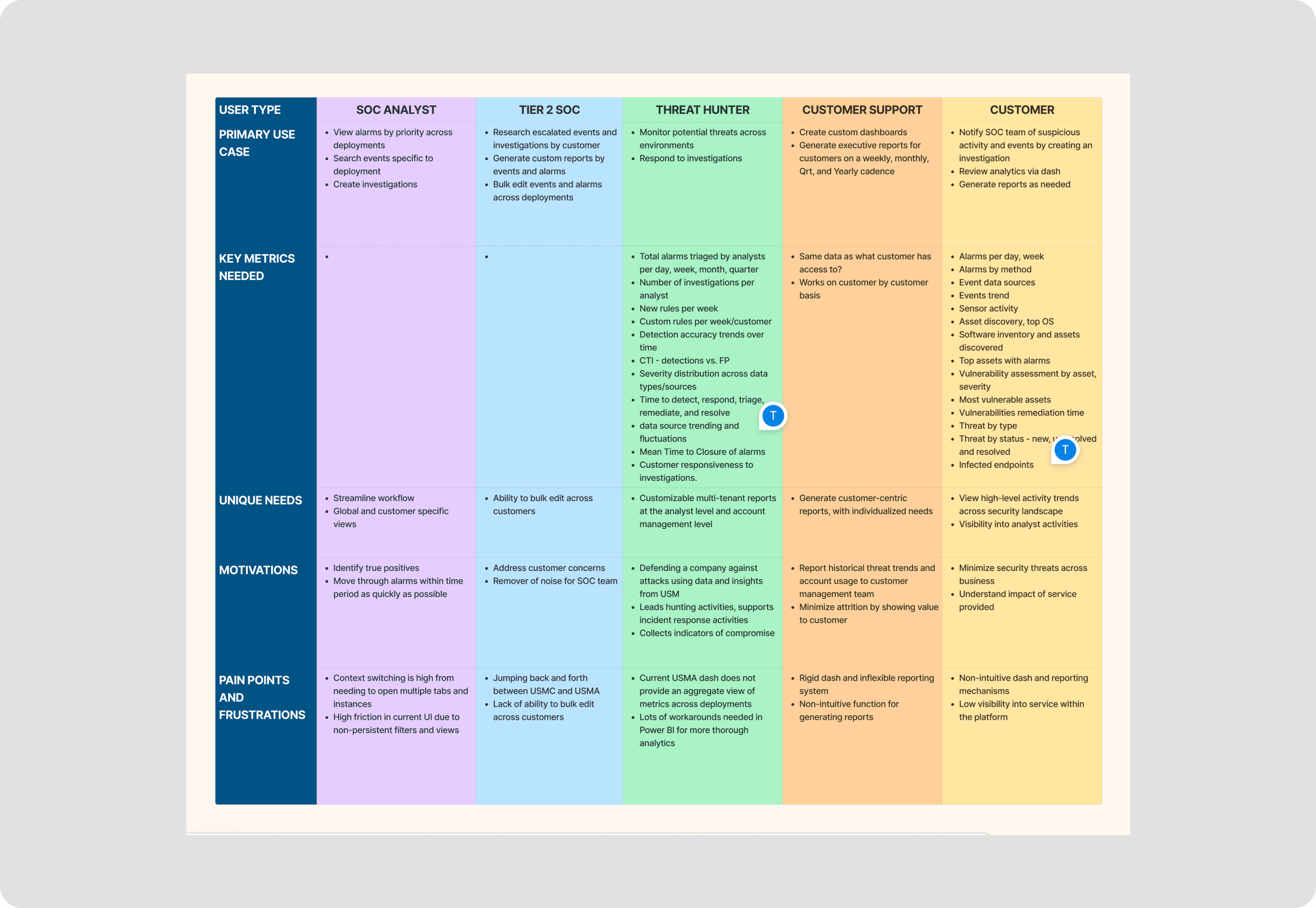 Security analysts operate in a high-pressure environment, often handling between 900 and 2000 alarms per shift across multiple customer accounts. These workflows are non-linear and require constant movement between investigation, filtering, escalation, and resolution. The existing system fragmented this process across multiple tools, logins, and views, creating friction and increasing the risk of missed signals. At the same time, the platform needed to support multiple user types, from highly technical SOC analysts to non-technical stakeholders, including customers and support teams. Each requiring different levels of access and visibility. This introduced an additional challenge: designing a system that could scale across expertise levels, presenting the same underlying data in ways that were both actionable for analysts and accessible to non-experts.