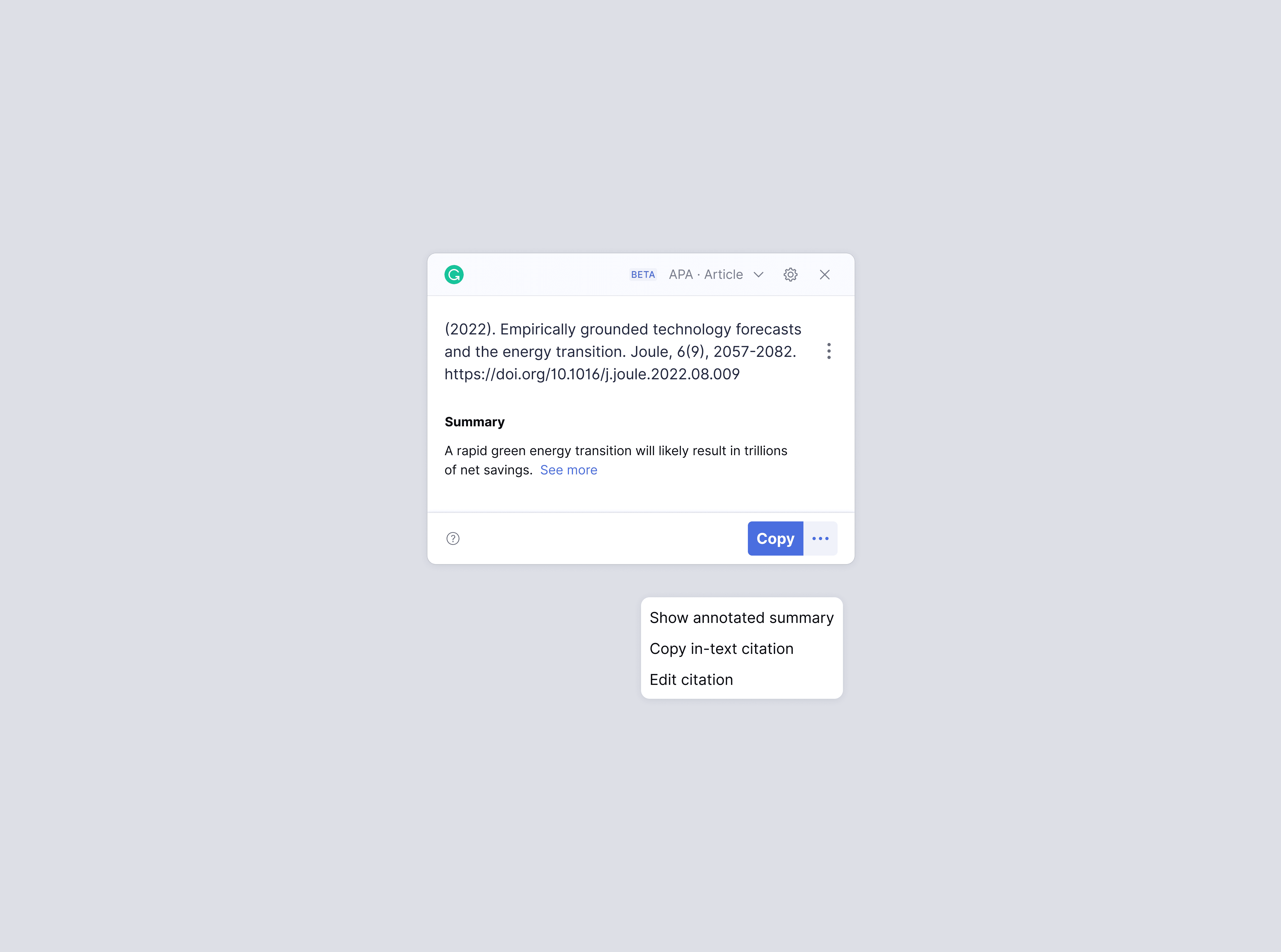 The final concept outlined a cohesive research system that extended Grammarly’s existing capabilities into long-form academic workflows. It enabled students to digest complex information more efficiently, capture and organize key insights, and apply them directly within their writing process. By embedding research support into familiar tools like the Citation Generator, the experience reduced context switching and created a more continuous workflow from reading to writing. The work also established a foundation for expanding beyond students, demonstrating how Grammarly’s technology could support broader research and knowledge work use cases.